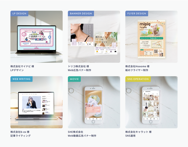 また、お仕事案件にチャレンジする機会もあり、自分の実力を試しながら着実に成長を実感できるのもSHEならではだと感じます。お仕事案件で採用されたSHEメイトさんをロールモデルとして「私もそうなれるはず!」と未来の自分を想像してワクワクできる!採用作品や企業様からのコメントもシェアいただけるので、どのような視点で作品を見ていただいたのかが分かりとても学びになります。※SHElikes受講生の通称