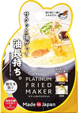 「サクッとあげものちゃん」は酸化を防ぐナノプラチナと遠赤外線パウダー&セラミックス配合。
