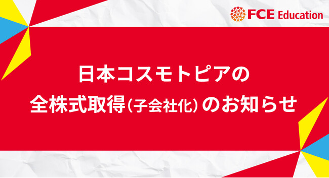 株式会社FCEエデュケーション(本社:東京都新宿区、代表取締役社長:尾上幸裕)は株式会社日本コスモトピア(本社:大阪府大阪市淀川区、代表取締役社長:下向峰子)の運営する全事業を新設分割して設立された新会社(以下、コスモトピア社)の全株式を取得しましたのでお知らせします。株式取得に伴い、2024年1月4日(木)よりコスモトピア社は当社の連結子会社となります。