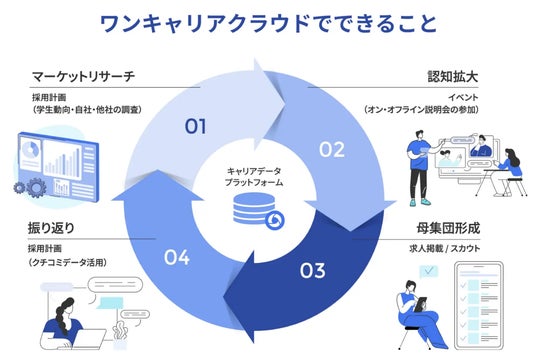 「ONE CAREER CLOUD」は、新卒採用メディア「ONE CAREER」にて収集したキャリアデータを活用し、企業の採用活動を支援するサービスです。