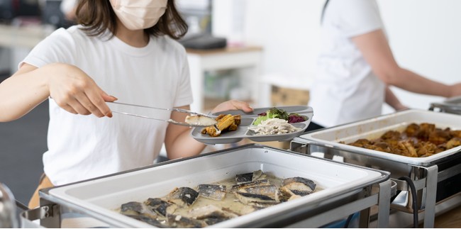 現地調理をせず、最小限の厨房設備で本格的なランチをオフィスで提供できるサービスです。創業当初から培ってきたケータリングのノウハウを活かし、“現地調理をしない社食”という新しい形のモデルを確立。弊社セントラルキッチンにて調理した食事をお届けいたします。そのため現地での料理人雇用や食材の仕入れも不要となり、厨房機器を最小化すると同時に使用電力を抑えることができるほか、大型の排気排水設備も不要なので大幅なコストダウンが可能となります。またメニュー監修にはノンピ専属のトップシェフらが参画。食のトレンドを取り入れた日替わりメニューやイベントメニューなど、毎日自慢のおいしいランチをお届けいたします。