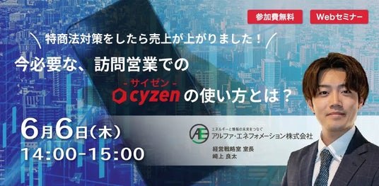 今回は訪問営業の活動管理アプリ「cyzen」を実際に利用し、法令対策と売上UPを実現した「アルファエネフォメーション株式会社」の崎上様より