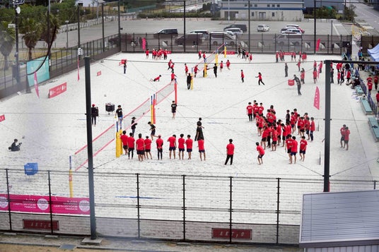 ビーチバレーボールは、屋外の砂の上に16m×8mのコートを設置し、1チーム2人が裸足でバレー ボールを行う競技です。3セットマッチで、第1、2セットは21点、第3セットは15点、2セット先取したチームが勝ちとなります(タイブレークの場合は2点差がつくまで)。