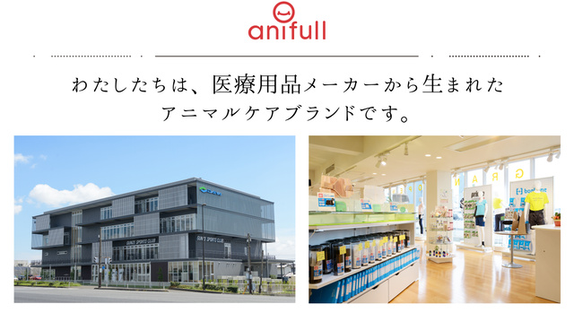 株式会社anifullは医療用品メーカーから生まれたアニマルケアの企業です。anifullはすべての動物が健康で活力に満ちた生活を過ごせるように。という想いから誕生しました。『動物の健康寿命延伸』に貢献するために「運動器をサポートする高品質製品」を私たちは提供し続け、常に進化する製品開発に望んでいきます。