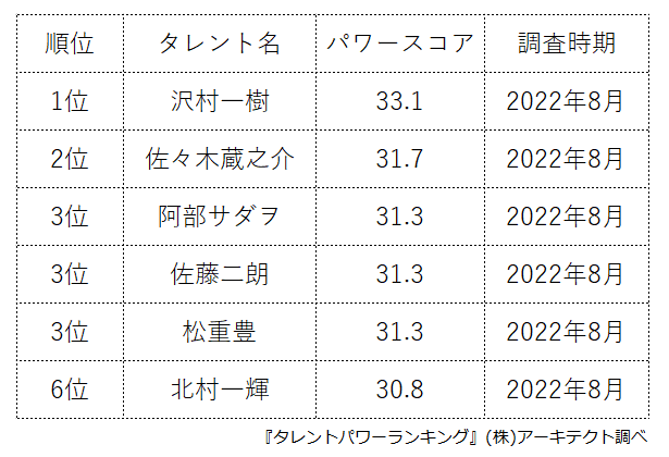 本ランキングは、2022年8月度に実施したタレント調査データ(一部過去実施データ)を利用し、タイトルに応じてランキング形式でまとめたものです。