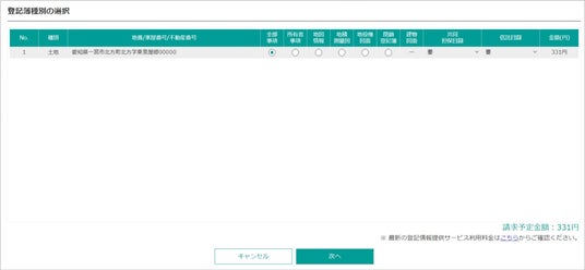 2.取得したい登記情報を選択。