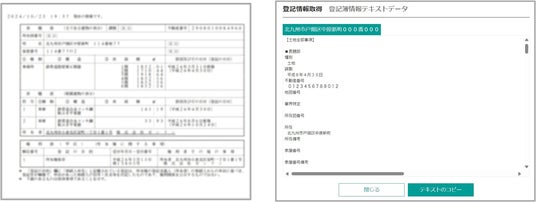 同時にテキスト化された登記情報の表示が可能。