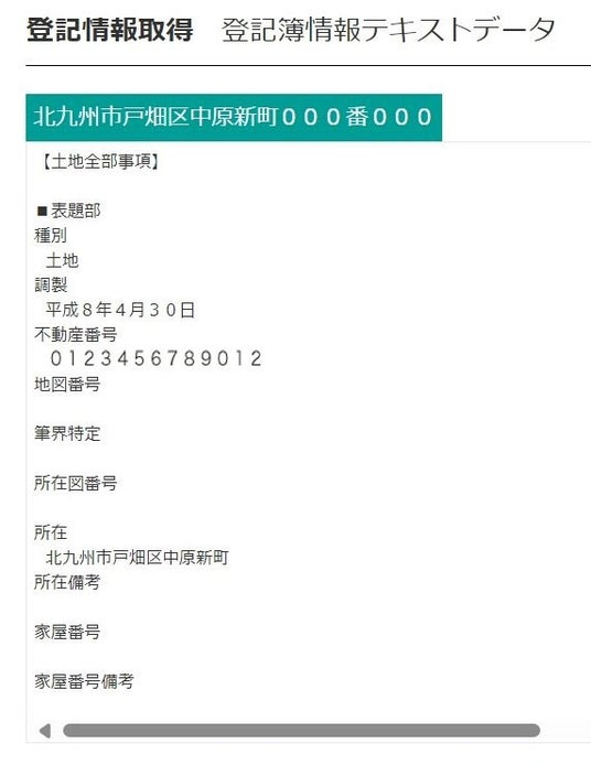 ▲登記取得機能のテキストデータイメージ