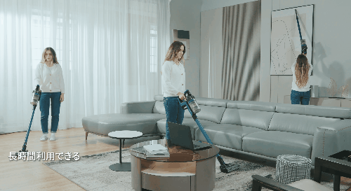 8*2200mAhの大容量バッテリーセルを搭載しており、使用する吸引モードに応じて15~50分間が連続使用可能です。 予備のバッテリーを購入しておけば、二重の掃除時間が可能になります。