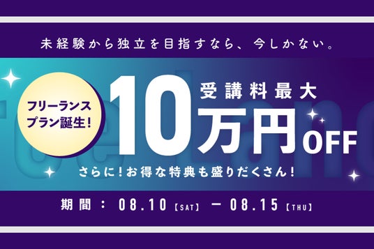 ・転職支援プラン/案件獲得保証プラン/フリーランスプラン:10万円OFF