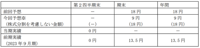 今回の株式分割に伴い、1株当たり配当予想を以下のとおり修正いたします。なお、配当予想に実質的な変更はありません。