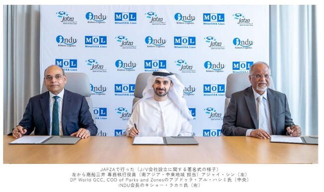 商船三井グループのMOL Middle East FZE(本社:ドバイ、ジュベール・アリ経済特区、以下「MOLME」)はドバイの倉庫事業大手であるINDU KISHORE LOGISTIC LLC(以下「INDU」)と、ドバイのジュベール・アリ経済特区(Jebel Ali Free Zone、以下「JAFZA」)において自営倉庫を保有する物流合弁企業、MOL INDU Warehousing and Logisticsを設立する契約を締結しました。ドバイは中東周辺諸国やアフリカへの貿易の玄関口であり、この協働は当社が目指す中東地域物流拠点の強化にとって重要な試金石となります。
