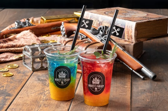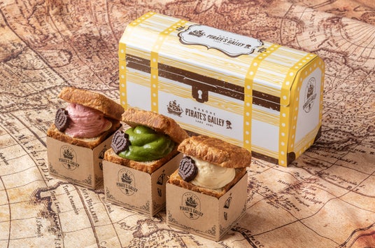 「海賊船内の厨房」の名に相応しいアンティーク感のあるレンガ調の壁とフィラメントランプに照らされた内装は、まるで海賊の集まる港に迷い込んだようです。宝箱を開けたときのようなワクワク感あふれるスイーツや、豪快なホットドックなど、“海賊らしさ”を随所に散りばめたメニューをご用意。