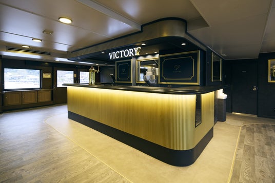箱根海賊船「ビクトリー」は18世紀に活躍したイギリスの戦艦「ビクトリー」をモデルシップとして2007年に建造しました。リニューアルでは、お客さま一人ひとりが心地よい豊かな船旅をお楽しみいただけるように様々なタイプの座席を新設するなど、特別船室のインテリアを刷新しています。また、船内カフェはバーカウンターをイメージしたシックで落ち着きのある空間へ生まれ変わりました。さらに、特別船室専用デッキを改良して、芦ノ湖を全身で感じられる開放感を高めています。