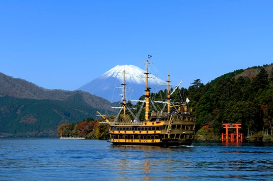 桃源台港から箱根町港・元箱根港を約25~40分で結ぶ海賊船は、「ビクトリー」「ロワイヤルII」「クイーン芦ノ湖」の3隻によって運航しています。湖上から眺める景観は美しく、船内は3Dアートや海賊のオブジェなど、お子さまから大人まで非日常の時間をお楽しみいただけます。