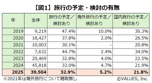 夏の旅行予定については、全国のヴァリューズモニター(20歳以上男女)を対象として、2025年6月23日~6月30日にアンケート調査を実施(回答者39,504人)。