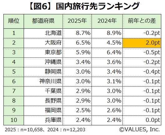 ◆国内旅行先は大阪への注目度増