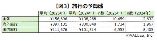 旅行の平均予算額は、全体で2024年の13万8,268円から2025年には15万6,696円と、2万円弱の増加が見られました。特に海外旅行での予算増が顕著で、33万848円から39万7,131円と、6.5万円以上増えています。物価高の中でも、夏の旅行くらいはメリハリをつけて楽しもうという人が多いのかもしれません。