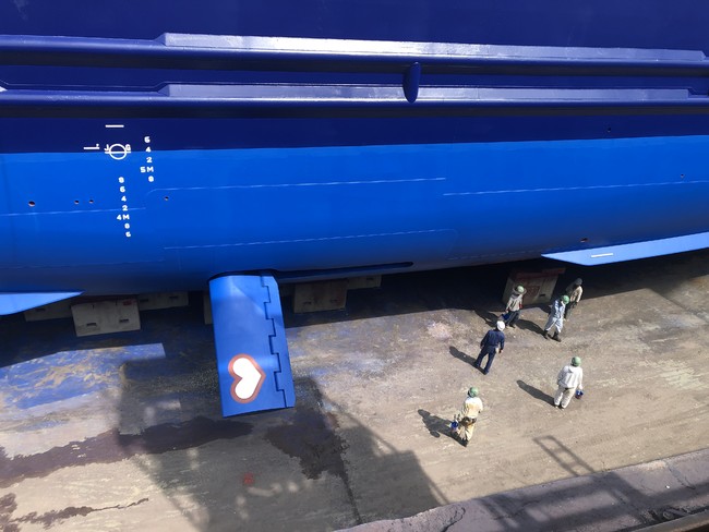 なお海事関係者に確認した限り、これまで「フィンスタビライザー」に(ハート)が描かれた船舶についての報告がないので、世界中でもほぼ類を見ないものと思われます。