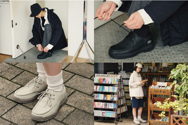 810sで「歩く」を考え、ロングウォークシューズを製造してきたノウハウをデイリーユースに落とし込んだ「COMUT(コミュート)」はMATTE BLACKとSANDの2色展開。通勤、通学時はもちろんトラディショナルなデザインで様々なシーンに適応する定番アイテムとして提案。また、定番の「BANDSTUDEN(バンドスチューデン)」に新色ECRU登場。
