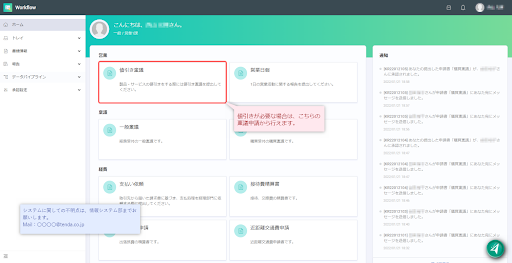 利用者はシステムの操作方法に関して、研修等による事前学習や、マニュアルの読み込み等を必要とせず、実機上で迷うことなく目的の操作が実行できる「システム教育のDX(デジタルトランスフォーメーション)」ツールとして活用いただけます。