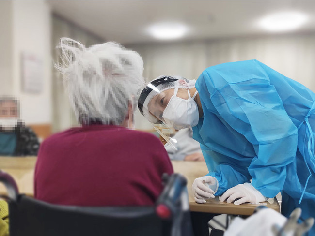 2020年4月以降、全国各地の病院や介護福祉施設に、医師・看護師等で構成される医療チームの派遣を継続しています。クラスターが発生すると、感染による欠勤や人材派遣会社の撤収により、深刻な職員不足に陥ります。また医療機関の病床ひっ迫により、福祉施設で陽性患者を治療しなければならない等、外部からの適切な支援が必要となります。