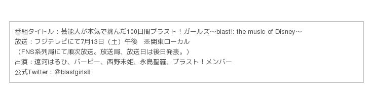この度、本公演をさらに盛り上げるプロジェクトが発足、特別番組の放送が決定しました。女性芸能人4人が『芸能人ブラスト!部』を結成し、100日間猛特訓を積み、「ブラスト!:ミュージック・オブ・ディズニー」