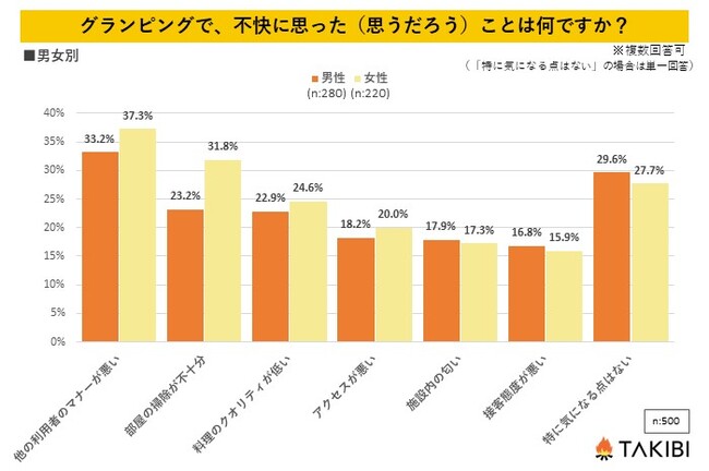 【質問:グランピングで不快に思った(思うだろう)ことは何ですか?】