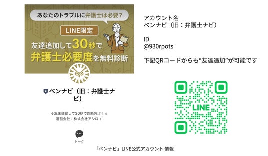 「ベンナビ」公式LINEアカウント 友達追加はこちら: https://line.me/ti/p/%40110veivz