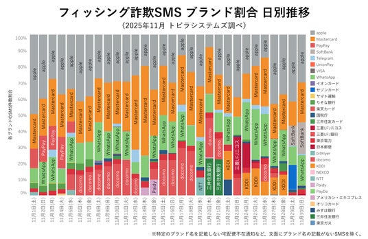 特殊詐欺やフィッシング詐欺の対策サービスを提供するトビラシステムズ株式会社(本社:愛知県名古屋市、代表取締役社長:明田 篤、証券コード:4441、以下「トビラシステムズ」)は、2025年11月に当社調査で確認された詐欺電話や詐欺SMSに関する独自調査レポートを公開します。(調査期間:2025年11月1日~ 11月30日)