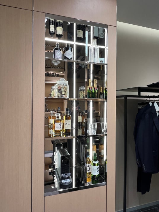 BOSS ストア 六本木ヒルズは、2フロア構成で総面積約452平方メートル を誇るモダンで光あふれる空間です。天井高を活かした開放感あふれる1階と、プライベートサロンを思わせる落ち着いた雰囲気の2階が、ダイナミックでありながら調和の取れた空間体験を創出します。ライトウッドを基調に、ストーンやマーブル、ブラックメタルのアクセントを組み合わせたインテリアは、エレガンスとコンテンポラリーなデザインのバランスというブランドの美学を表現しています。オープンファサードにより、店内のコレクションを一望できる設計とし、自信とスタイルを体現する空間へと誘います。今回のリニューアルでは、新たにバーカウンターを設置。BOSSのブランドコードに沿ったラグジュアリーなホスピタリティを提供します。