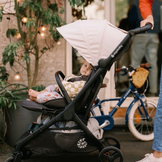 シートに座る赤ちゃんも、ベビーカーを操作するパパママも快適。