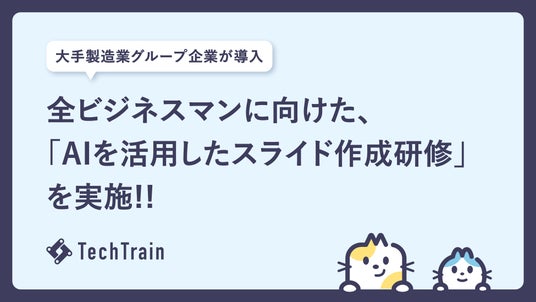 「テクノロジーを支える、全ての人のターミナルに。」を掲げるTechTrain(株式会社TechBowl、本社:東京都千代田区、代表取締役CEO:小澤 政生、以下「TechTrain」)は、生成AIを活用した資料作成を体系的に学べる「AIを活用したスライド作成研修」を、国内でも先進的なAI活用に取り組む大手製造業グループ企業へ提供しました。