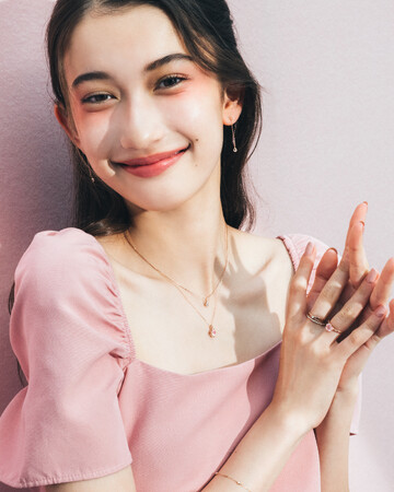 ピアス¥15,400<K10PG/ロース゛クォーツ/アメシスト/ホワイトトパース゛/ピンクトルマリン> ネックレス上から¥11,000<SV925(ピンクコ゛ールト゛メッキ)/キューヒ゛ックシ゛ルコニア>(2024年1月8日までの期間限定価格) ¥36,300<K10PG/ロース゛クォーツ/タ゛イヤモント゛> リング左から¥49,500<K18PG/タ゛イヤモント゛> ¥62,700<K18PG/タ゛イヤモント゛> ¥41,800<K10PG/ロース゛クォーツ/タ゛イヤモント゛> ブレスレット¥46,200<K18PG/タ゛イヤモント゛>