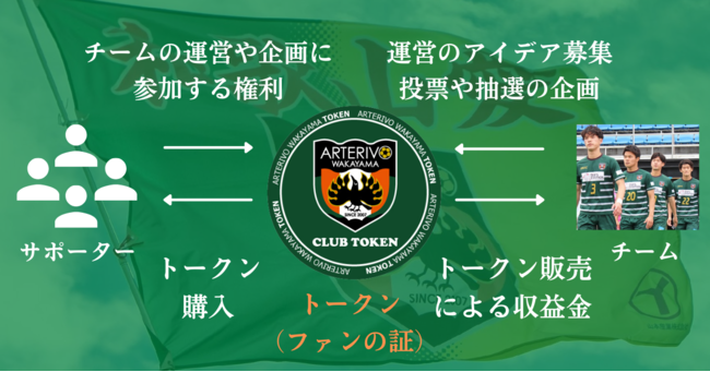 アルテリーヴォ和歌山のトークンは”アルテリーヴォトークン”としてFiNANCiE上で発行されます。トークンを購入いただいた方々は、運営の一部に携われる投票企画への参加や特典抽選などへ応募いただくことができます。