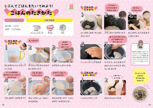 ★作る前の準備、調理器具の使い方の基本、作り方、後片付けまでを学べます