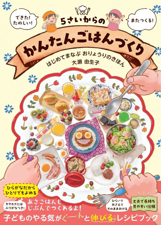 この本では「5歳前後の、料理や食べることに興味を持ったときから」「包丁なども含む正しい料理の基本」を学び、火も包丁も使わず本当に簡単に作れるおやつやごはんから、包丁の扱い方や火を使う料理まで、だんだんステップアップしながら学べる32のレシピを紹介しています。