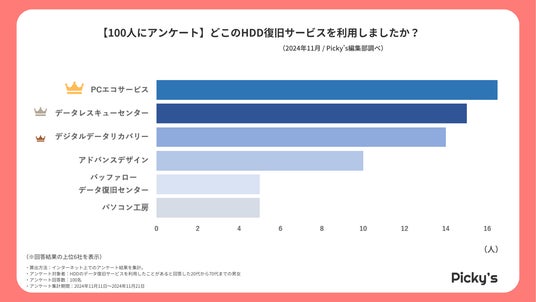「Picky’s」は、インターネットショッピングにおいて、購入前に試せない・選ぶべきものがわからないという課題の解決を目標に、あらゆる商品・サービスのおすすめランキングや検証レビューを紹介するサイトです。このたびPicky’s(https://picky-s.jp/)では、HDDのデータ復旧サービスの利用状況についてインターネット上でアンケート調査を行いましたので発表いたします。