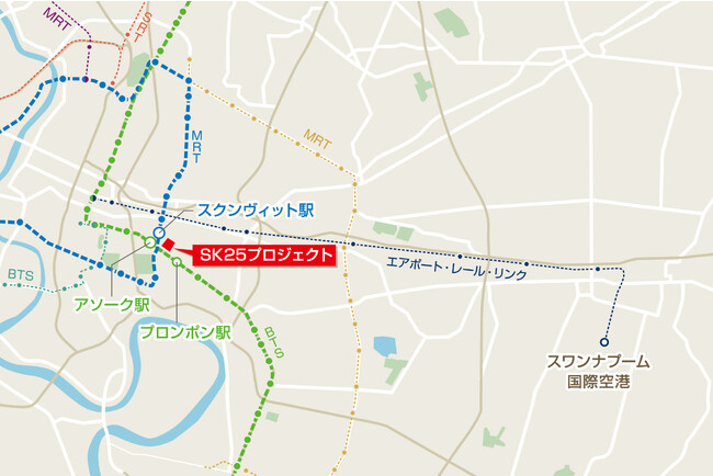 参画するオフィスビルプロジェクト「スクンヴィット25プロジェクト」は、バンコク中心地のオフィスビルと商業施設が集積するBTS(高架鉄道)「アソーク」駅およびMRT(地下鉄)「スクンヴィット」駅から徒歩5分、スクンヴィット・ソイ25の角地に位置します。地上7階建て、延床面積約9,500平方メートル のオフィスと一部商業区画を有する中規模オフィスビルの開発であり、Thai Takenaka International Ltd.(竹中工務店現地法人)による設計・施工により、2023年7月頃の完成を目指しています。今後、日系企業をはじめ、各国企業のテナント誘致活動をおこなってまいります。
