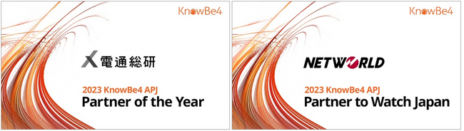 この年間パートナー表彰プログラムは、販売/マーケティング活動における優れた業績を達成したKnowBe4のチャネル販売パートナーを表彰するものです。KnowBe4は、アジア太平洋/日本地域へ積極的に投資し、事業を拡大してきています。これに伴うアジア太平洋/日本地域のパートナービジネスの業績好調を受けて、KnowBe4は、昨年に続き、アジア太平洋/日本地域の年間パートナー表彰プログラムを実施しました。日本の販売パートナー2社を含むアジア太平洋/日本地域の販売パートナー6社が選出されました。日本からは、アジア太平洋/日本地域の年間最優秀パートナーアワード(パートナー・オブ・ザ・イヤー)に 株式会社電通総研様が、また、各地域で注目すべき顕著な業績を達成したパートナー様のアワード(パートナー・ツー・ウオッチ:Partner to Watch - Japan)に株式会社ネットワールド様が選定されました。