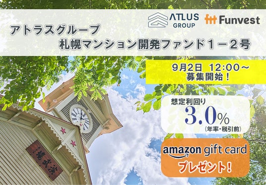 「未来をわかちあう投資」を提供する「Funvest(ファンベスト)」(以下、Funvest)は、「アトラスグループ 札幌マンション開発ファンド1-2号」(以下、本ファンド)の募集を9/2より開始しますので、お知らせいたします。