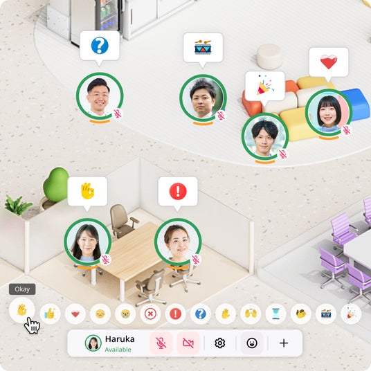 oVice株式会社(本社:石川県七尾市、代表取締役CEO:ジョン・セーヒョン)は、「今」の状況がわかり仕事のスピードが上がるバーチャルオフィス「ovice(オヴィス)」内で感情を表現するためのリアクション機能に、「砂時計」や「はてな」などの新たに5種類を追加し、リアクションの種類が全13種類となったことをお知らせします。これに合わせて、各リアクションにアニメーションを加え、音もより分かりやすくアップデートすることで、豊かな感情表現を可能にしました。