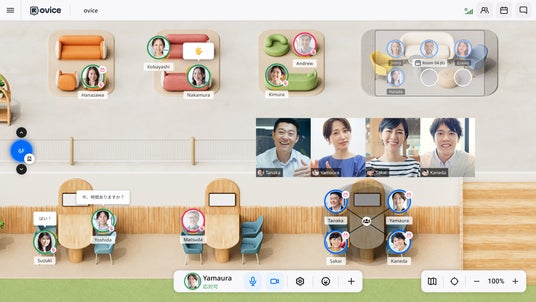 「今」の状況がわかり仕事のスピードが上がるバーチャルオフィス「ovice(オヴィス)」を開発・提供しています。oViceには、日本各地・海外(韓国、オーストラリア、チュニジア等)に居住する約100名の社員が在籍しており、基本的に全員がフルリモート(オフィス出社のない完全なリモートワーク)で勤務してきました。2024年2月、製品機能の改善に向けた実験などを行うため、半年間限定のリアルオフィス「ovice東京半年支店」を開設。東京近郊に居住する社員が通勤して勤務しています。