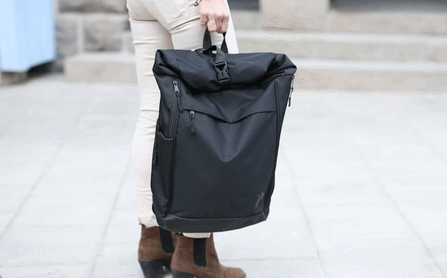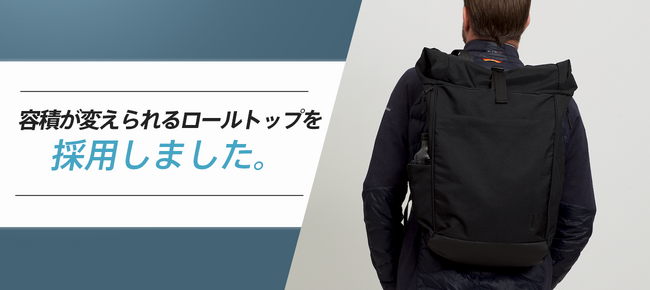 【Vertical Ergonomic Backpack】は中の荷物に合わせて容積が変えられるロールトップを採用。