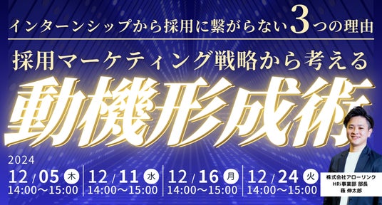 本セミナーでは、採用マーケティングの観点から動機形成術を紹介し、採用直結型インターンシップを利用して内定承諾者を10名から20名に倍増させた具体的なノウハウを交えて解説いたします。