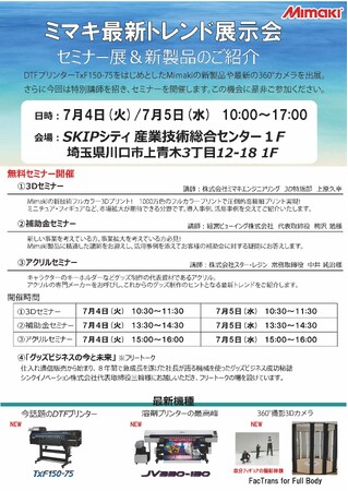 シンクイノベーション株式会社が【ミマキ最新トレンド展示会】にてセミナーを実施いたします!