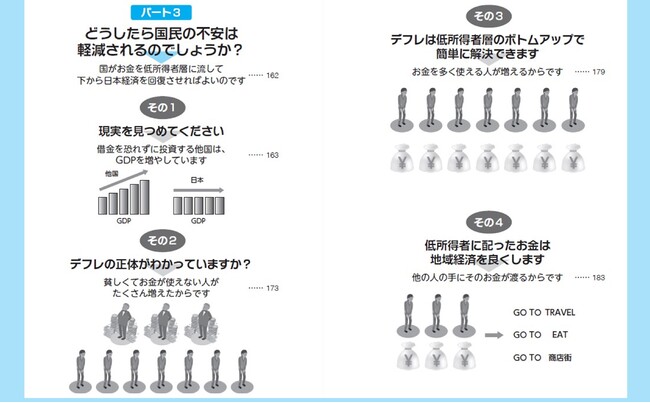 ■社会保障費を増やすと、景気は良くなる? 悪くなる?■国民1人当たり900万円の借金というのは、勘違いです■国の借金は問題ない。それどころかもっと借金すべきだ■国民がいくらがんばって働いても、デフレは脱却できない■今の政策のままだと、日本は20年後、アジア最貧国に?■不景気が続いているのは、国が「ばらまき」をしないから … etc.