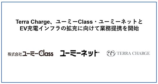 EV充電インフラ事業「Terra Charge(読み:テラチャージ)」を展開するTerra Motors株式会社(本社:東京都港区、代表取締役社長:徳重徹、以下「テラモーターズ」)は、神奈川県湘南エリアに特化して賃貸管理を行う株式会社ユーミーClass(本社:神奈川県藤沢市、代表取締役:浅岡亮二)と、同じく神奈川県湘南エリアに特化し主に賃貸仲介を行う株式会社ユーミーネット(本社:神奈川県藤沢市、代表取締役:木村光貴)と業務提携契約を締結いたしました。