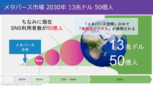 そして、日本全体のDX推進を牽引する役割を果たすことで、2030年までに50億人が日常的にメタバースを利用する世界の実現を目指してまいります。