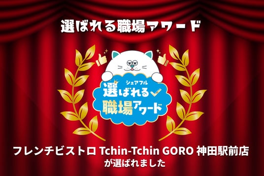 「はたらいて、笑おう。」をビジョンに掲げるパーソルグループのスキマバイトアプリ『シェアフル』やSaaSシフト管理サービス『シェアフルシフト』、就業実績を活用した人材紹介サービス『シェアフルエージェント』などを提供するシェアフル株式会社(本社:東京都港区、代表取締役社長:横井 聡)は、第八回となる「選ばれる職場アワード」を開催し、今回のアワードは株式会社スマイルリンクル(本社:東京都千代田区、代表取締役社長:須藤 剛)が運営する「フレンチビストロ Tchin-Tchin GORO 神田駅前店」が受賞し同店舗への受賞インタビューを公開しました。